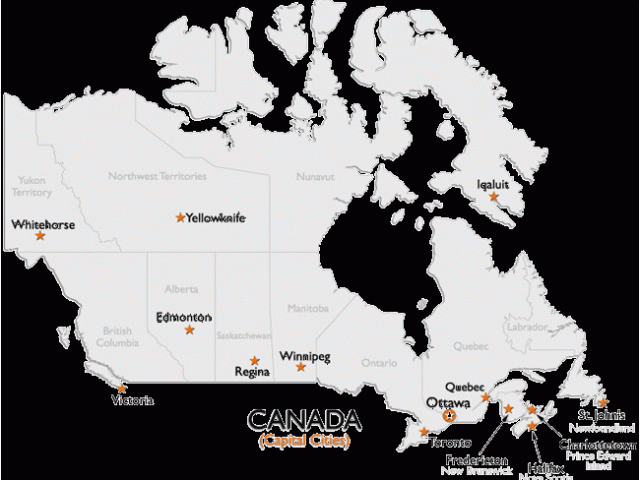 Back To Canada Map with Capital Cities and Provinces