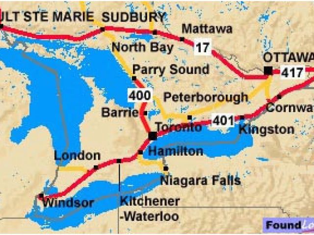 Trans Canada Highway Map to and From toronto Ontario and the Trans Canada Highway